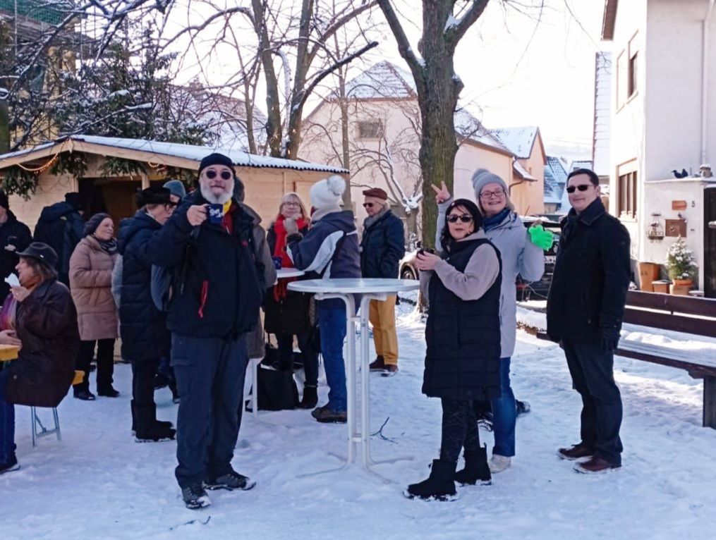 Mit der Wanderung am Samstag, 18. Januar 2025 eröffnete die Abteilung des TV Ungstein die Wander-Saison 2025. Seit der Gründung im Jahre 2013 und nach der ersten offiziellen Wanderung 2014, geht man nun in das 12. Wanderjahr. Bei winterlichen Temperaturen, aber trotzdem guten Wanderwetter, fanden sich wiederum 21 Wanderfreunde, (plus 2 Hunden) auf dem Sportgelände des TV Ungstein ein. Als Wanderführer für diese Wanderung war vorgesehen Elias Knittel, der jedoch krankheitsbedingt absagen musste. So hatten die Abteilungsleiter Astrid und Jochen Englert die Wanderführung übernommen. Zunächst ging es mit dem Auto nach Kallstadt zum Parkplatz hinter der Schule. Die Führung von dort übernahm dann Karl-Wilhelm Sauer. Hier konnten dann die Teilnehmer während der Wanderung erfahren von den 15 Schautafeln und über die örtlichen Begebenheiten mit Bildern und Texten. Überall hatte Karl-Wilhelm Sauer kurzweiliges und Interessantes davon zu berichten. Sein Vortrag gaben im Laufe der Wanderung interessante Einblicke in die Geschichte der Kallstadter und Herxheimer Gemarkung. Abteilungsleiter Jochen Englert bedankte sich am Ende auch im Namen aller teilnehmenden Wanderfreunde bei Karl-Wilhelm Sauer für die begleitenden Worten und Erklärungen. Der Abschluss der Wanderung fand dann Heikes „Alte Scheier“ in Kallstadt statt, wo man bei gutem Essen und Trinken noch in gemütlichen Runde die interessante und informative Wanderung ausklingen ließ und die sicher bei allen in guter Erinnerung bleibt.