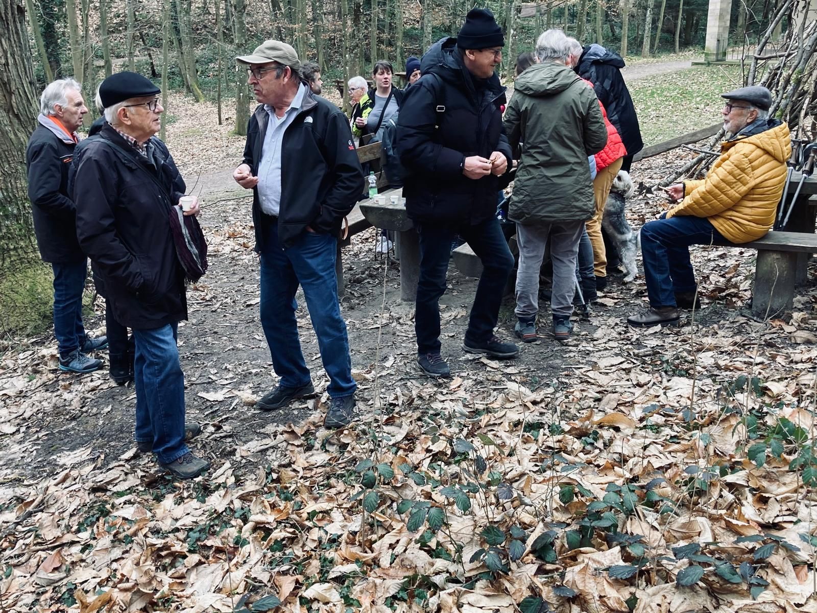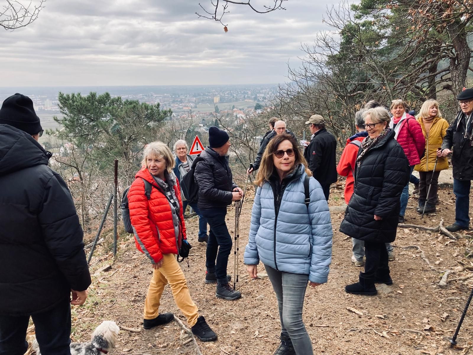 Mit der Wanderung am Samstag, 18. Januar 2025 eröffnete die Abteilung des TV Ungstein die Wander-Saison 2025. Seit der Gründung im Jahre 2013 und nach der ersten offiziellen Wanderung 2014, geht man nun in das 12. Wanderjahr. Bei winterlichen Temperaturen, aber trotzdem guten Wanderwetter, fanden sich wiederum 21 Wanderfreunde, (plus 2 Hunden) auf dem Sportgelände des TV Ungstein ein. Als Wanderführer für diese Wanderung war vorgesehen Elias Knittel, der jedoch krankheitsbedingt absagen musste. So hatten die Abteilungsleiter Astrid und Jochen Englert die Wanderführung übernommen. Zunächst ging es mit dem Auto nach Kallstadt zum Parkplatz hinter der Schule. Die Führung von dort übernahm dann Karl-Wilhelm Sauer. Hier konnten dann die Teilnehmer während der Wanderung erfahren von den 15 Schautafeln und über die örtlichen Begebenheiten mit Bildern und Texten. Überall hatte Karl-Wilhelm Sauer kurzweiliges und Interessantes davon zu berichten. Sein Vortrag gaben im Laufe der Wanderung interessante Einblicke in die Geschichte der Kallstadter und Herxheimer Gemarkung. Abteilungsleiter Jochen Englert bedankte sich am Ende auch im Namen aller teilnehmenden Wanderfreunde bei Karl-Wilhelm Sauer für die begleitenden Worten und Erklärungen. Der Abschluss der Wanderung fand dann Heikes „Alte Scheier“ in Kallstadt statt, wo man bei gutem Essen und Trinken noch in gemütlichen Runde die interessante und informative Wanderung ausklingen ließ und die sicher bei allen in guter Erinnerung bleibt.