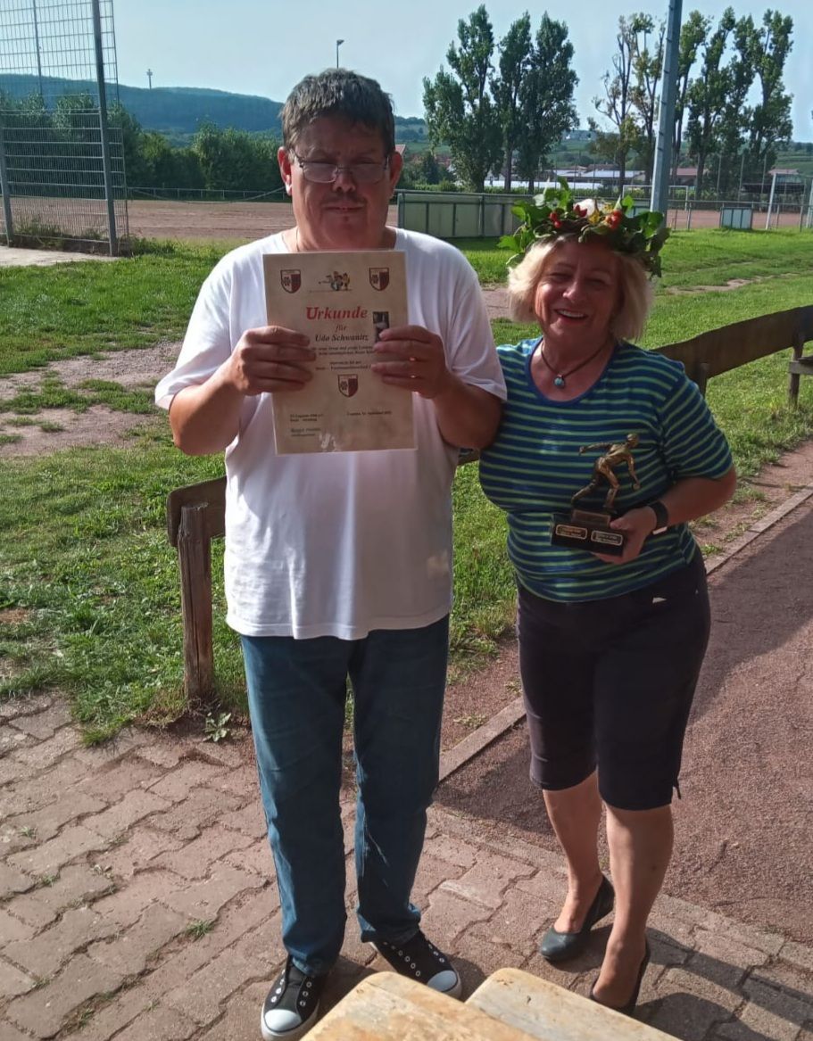 Für seine langjährige Treue und große Leidenschaft beim sonntäglichen Boulespiel, sowie jüngster Spieler bekam Udo Schwanitz ein Präsent und Urkunde.